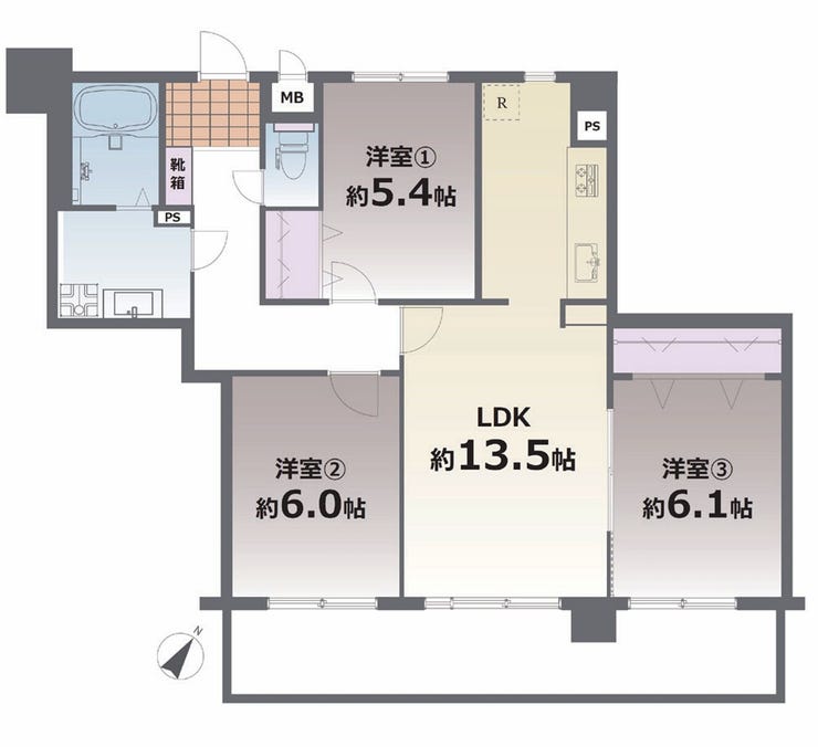 | 主要採光 | 南東向 | バルコニー | 南東向13.05㎡ |